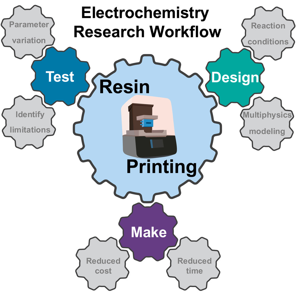 In our recent perspective in Chem Catalysis "Resin 3D printing enables accessible electrochemical cell design" we elucidate how vat polymerization resin 3D-printing can play a major role in electrochemical research.
